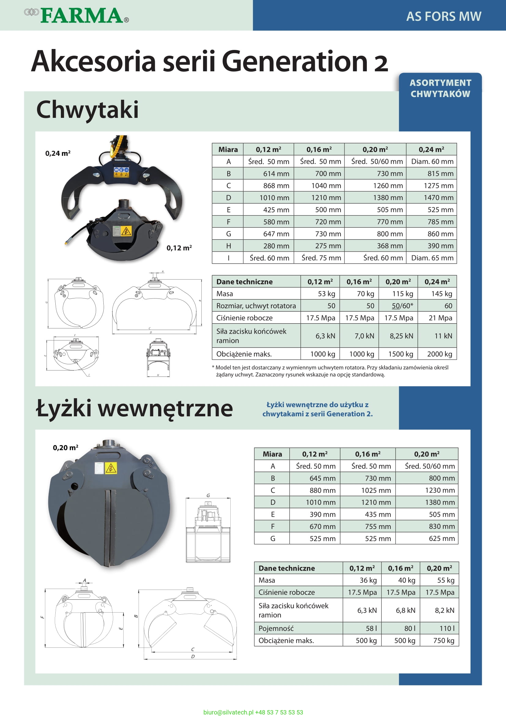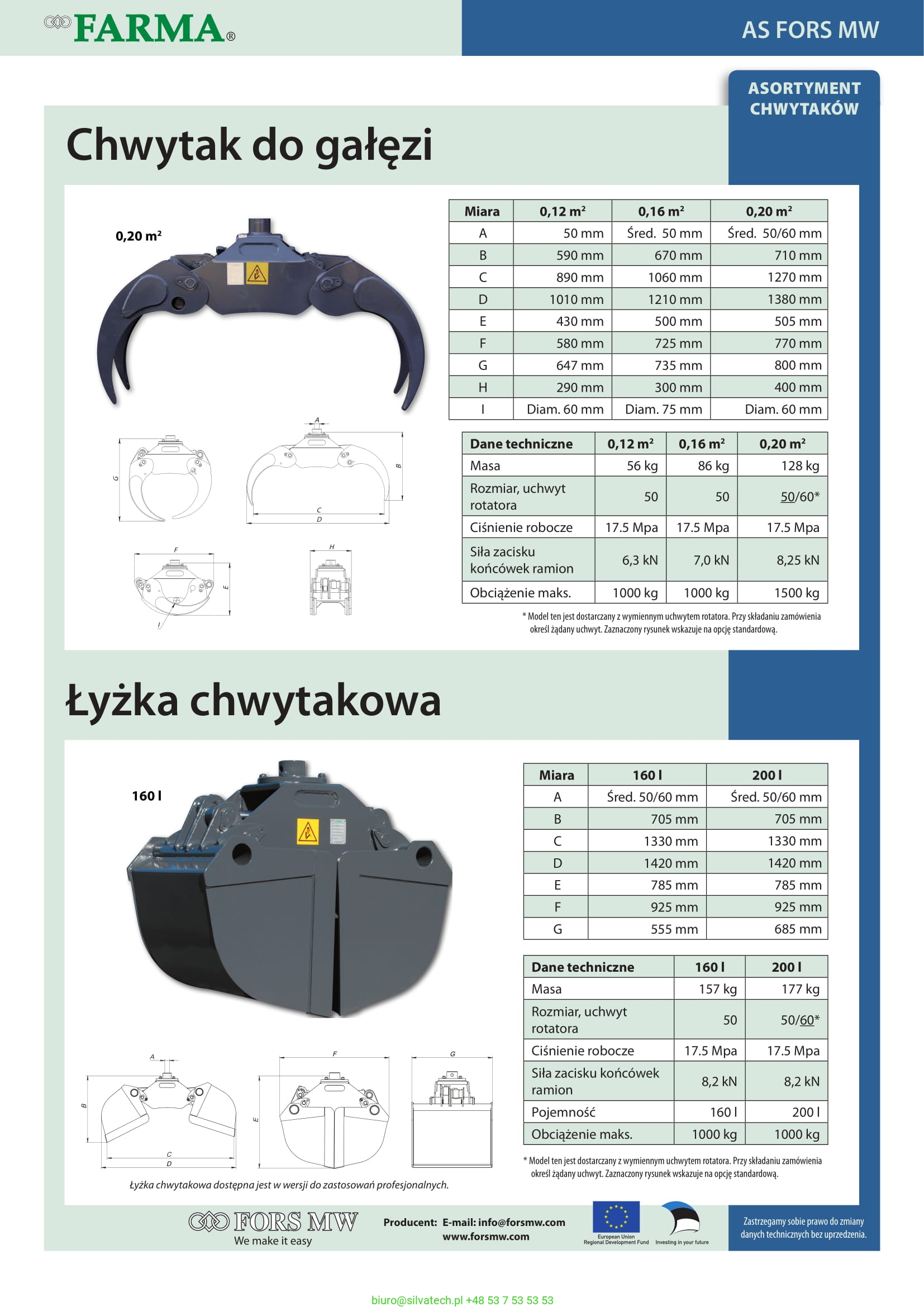 FARMA opracowała dwa chwytaki do gałęzi, które ułatwiają załadunek gałęzi i koron drzew trudnych do chwycenia zwykłym chwytakiem. Są to modele 0,12/ 0,16 i 0,19. Istniejący chwytak zamontowany w żurawiu zostaje zastąpiony przez chwytak do gałęzi. Aby dowiedzieć się, jaki chwytak do gałęzi można zastosować w danej ładowarce chwytakowej i jakie działania umożliwia, należy skontaktować się z lokalnym dilerem.