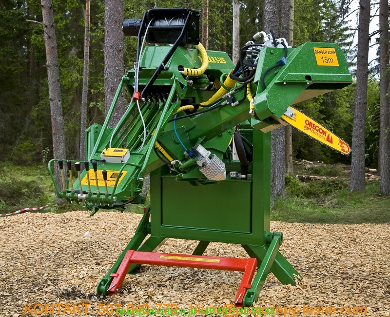 Inne cechy urządzenia obejmują na przykład zintegrowany siłownik przedłużenia wysięgnika z funkcją amortyzacji na obu końcach, zintegrowaną piłę z wbudowaną pompą smarującą i trwale zamontowanym silnikiem, duży 60-litrowy zbiornik oleju hydraulicznego i panel sterowania o regulowanej wysokości w celu zapewnienia optymalnej pozycji pracy.