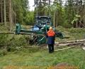 Po obaleniu drzewa wciągarka, w którą wyposażony jest procesor, pozwala na łatwe przeciągnięcie kłody. Przystawkę z procesorem można następnie wykorzystać do przerzucania, okrzesywania, przycinania i sortowania drewna na odpowiednie stosy.