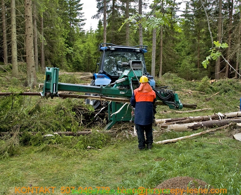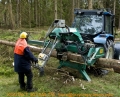 Po obaleniu drzewa wciągarka, w którą wyposażony jest procesor, pozwala na łatwe przeciągnięcie kłody. Przystawkę z procesorem można następnie wykorzystać do przerzucania, okrzesywania, przycinania i sortowania drewna na odpowiednie stosy.