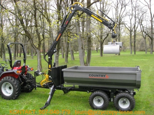 Przyczepy do trzebieży firmy COUNTRY charakteryzują się doskonałym wykonaniem z dbałością o najdrobniejsze szczegóły. Dzięki niewielkiej masie i kompaktowym wymiarom doskonale radzą sobie w trudnym terenie nawet ze słabszymi ciągnikami jak C330 czy C360. Są w zależności od wersji wyposażone w żurawie o długości od 3,3 do 4,7m z wysuwanym ramieniem teleskopowym. Hydraulika jest precyzyjna i szybka a zastosowane materiały pochodzą od producentów z Finlandii i Niemiec.