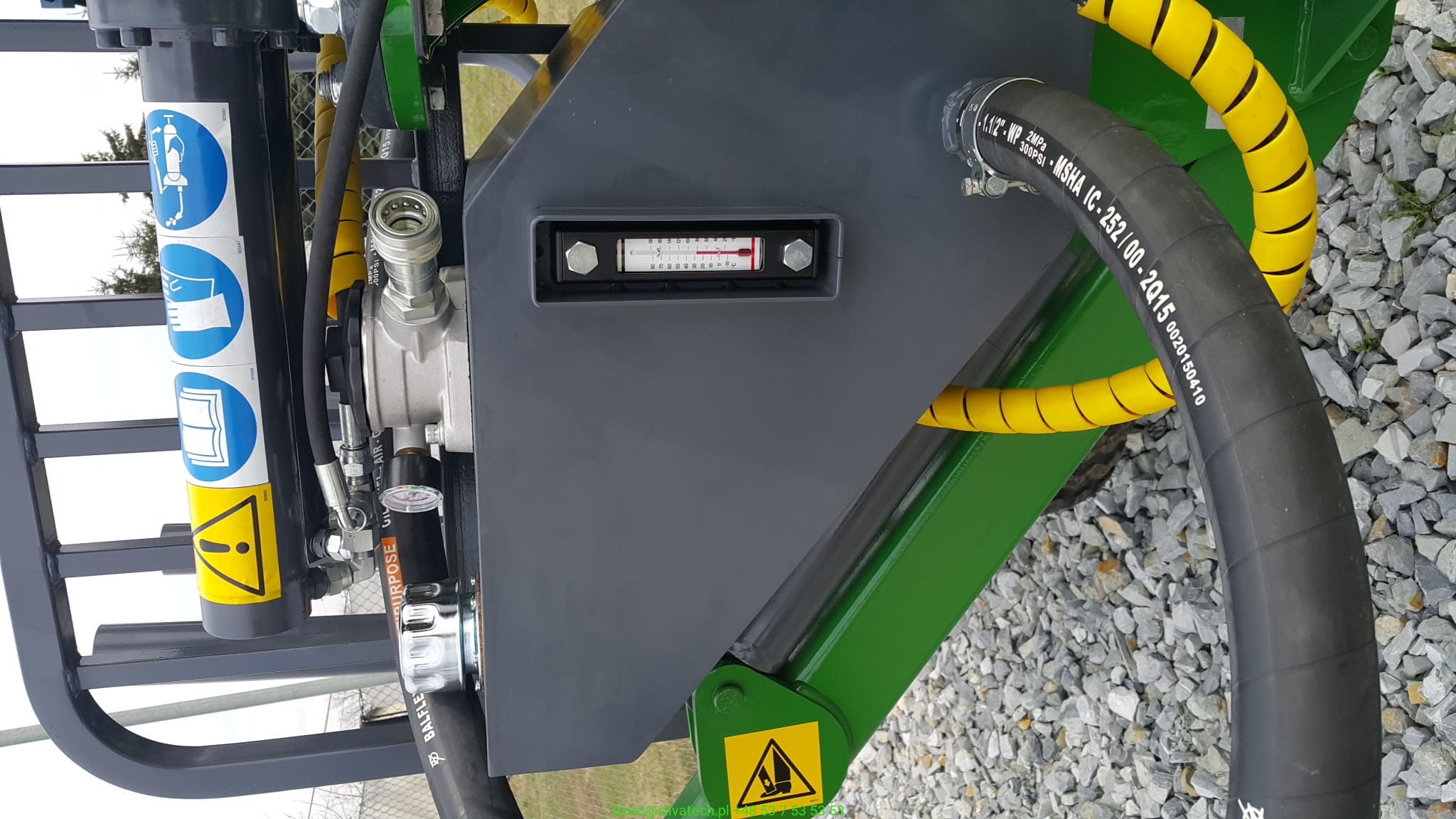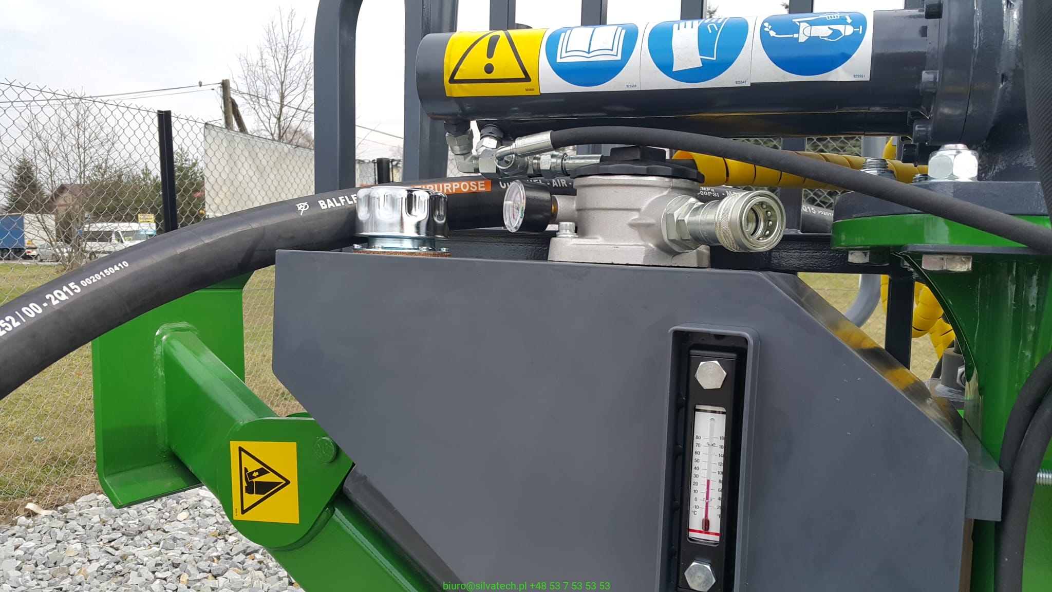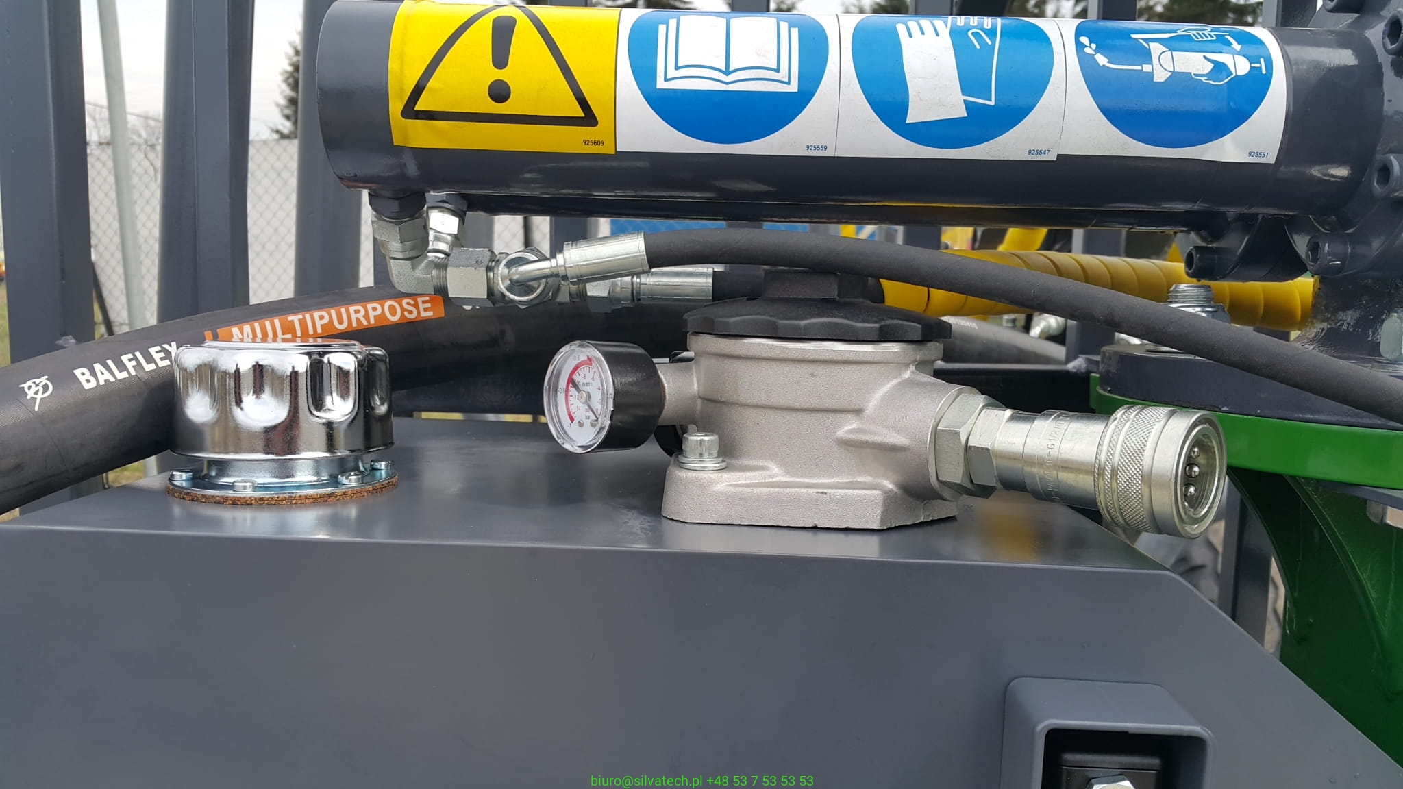 Zbiornik może być wyposażony w przyłącze 1'' lub króciec na wąż hydrauliczny 40mm.