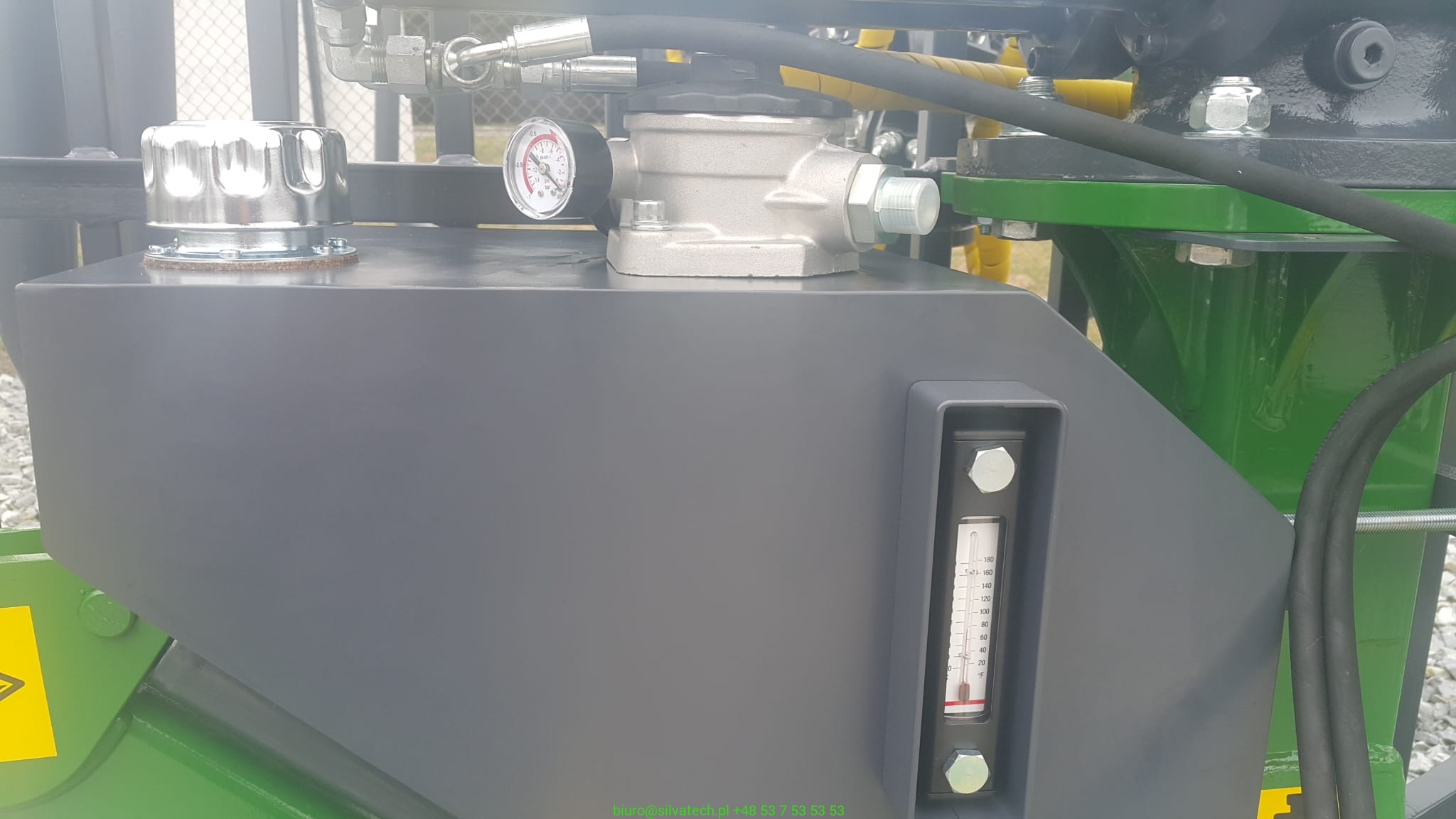Kompletny zbiornik z filtrem, korkiem, odpowietrznikiem, przyłączami, termometrem oraz listwami montażowymi i korkiem spustowym. Zbiornik wyposażony w filtr o przepływie 60l/min dzięki czemu obniżone zostają opory przepływu i znacząco wzrasta wydajność pompy przy wysokich obciążeniach roboczych.
